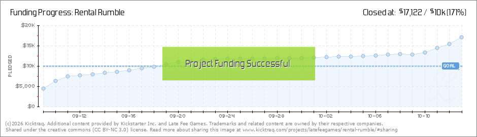 Excellent work Rental Rumble backers! Rental Rumblers? You've pledged over $12K making Rental Rumble a reality AND you've unlocked our first stretch goal. Stretch goals are new funding goals that will enhance the game and make it even better. ALL... (Read More)