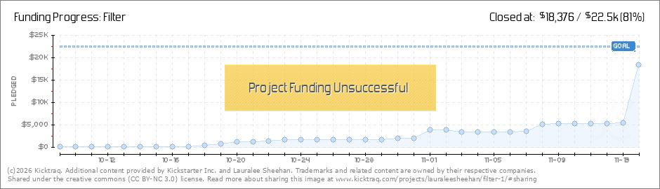 Help your backers reach your daily goals and help others see how you're doing. It's easy, with Kicktraq Mini.Here are a few quick snippits of code you can use to embed your personalized widget on your website, in your blog, and even on your favorite forum.