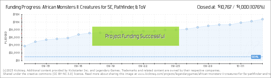 We're excited to see folks interested in adding African Monsters to their campaign and we hope you can continue to spread the good word about this campaign to fellow 5E fans, Pathfinder players, and Valiant venturers! Special thanks to Nathaniel R.... (Read More)