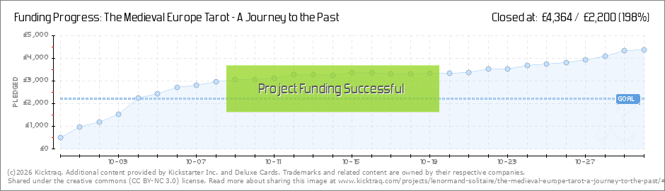 Dear all, The Medieval Europe Tarot has today reached 138% of its funding, with still 21 days to go! A bery warm ‘Thank you’ to each one of you :). This exciting development allows us to consider a stretch goal to make the deck more attractive... (Read More)