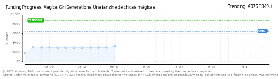 Help your backers reach your daily goals and help others see how you're doing. It's easy, with Kicktraq Mini.Here are a few quick snippits of code you can use to embed your personalized widget on your website, in your blog, and even on your favorite forum.