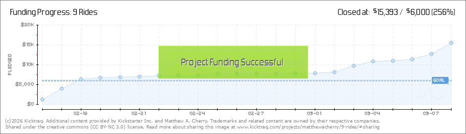 Hey guys, again can't thank you all enough for contributing to our 9 Rides Kickstarter campaign and we hit 8K raised on our campaign late last night. Yay! We are all working really hard to finalize the film and we wanted to share our official SXSW... (Read More)