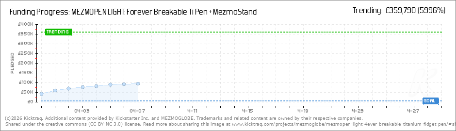 Help your backers reach your daily goals and help others see how you're doing. It's easy, with Kicktraq Mini.Here are a few quick snippits of code you can use to embed your personalized widget on your website, in your blog, and even on your favorite forum.
