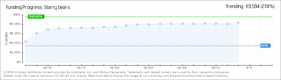 Help your backers reach your daily goals and help others see how you're doing. It's easy, with Kicktraq Mini.Here are a few quick snippits of code you can use to embed your personalized widget on your website, in your blog, and even on your favorite forum.