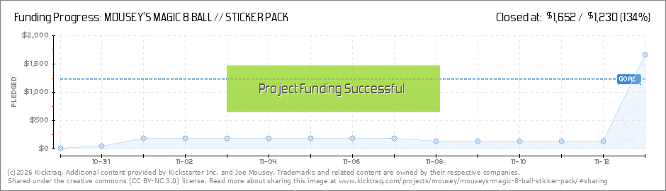 Help your backers reach your daily goals and help others see how you're doing. It's easy, with Kicktraq Mini.Here are a few quick snippits of code you can use to embed your personalized widget on your website, in your blog, and even on your favorite forum.