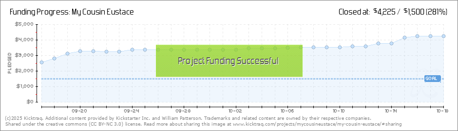 Hi everyone, I wanted to reach out to thank you for your early and enthusiastic support of My Cousin Eustace. We are just about halfway through the Kickstarter campaign, and already 224% funded! I can now print a larger upfront run of the book, and... (Read More)