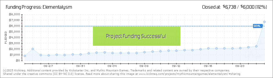 Elementalysm is officially funded!Thanks to the miraculous generosity of our backers, Elementalysm will survive! We cannot thank you all enough. It is our pleasure to make this universe come to life and bring you all an amazing new setting of... (Read More)