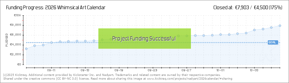 Ship Ahoy backers! Yaaay!! The funding goal for the 2026 calendar was reached today! Thank you so so much! :DThe campaign has 26 days to go still, and of course there are some really exciting Stretch Goals (a vinyl sticker, art print and a bookmark)... (Read More)