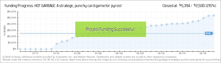 We did it! Thanks every for your support in helping make Hot Garbage a reality! So what happens next? There's a short waiting period for funds to clear, but as soon as that happens I'll be sending out a survey to everyone to get all the info I need... (Read More)