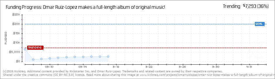Help your backers reach your daily goals and help others see how you're doing. It's easy, with Kicktraq Mini.Here are a few quick snippits of code you can use to embed your personalized widget on your website, in your blog, and even on your favorite forum.