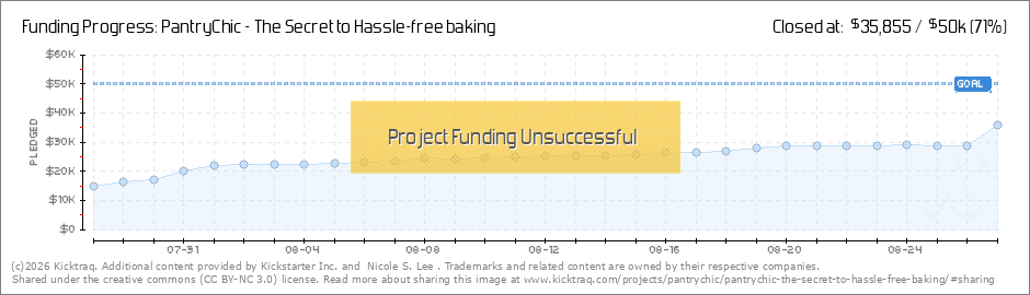 PantryChic Backers! After 1 week we have achieved over 40% of our goal. Now, two weeks into the campaign, we are over 110 backers and nearing the halfway mark! We still have a long way to go to achieve our goal and we need your help spreading the... (Read More)