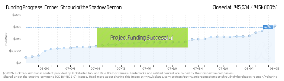 We had a great opening weekend and are now 1/3 of the way to our total goal. We thank everyone for their support thus far. Let's continue to spread the positive word about Ember: Shroud of the Shadow Demon. We are gearing up for DexCon this weekend... (Read More)