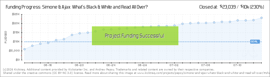 Hi, Everyone! Just a week and a day into the campaign, and we’ve reached the first stretch goal! The book will now be a Hardcover! I'm super excited about this, and so are Simone & Ajax! Check out this video of them from S&A superfan Sam... (Read More)