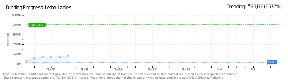 Help your backers reach your daily goals and help others see how you're doing. It's easy, with Kicktraq Mini.Here are a few quick snippits of code you can use to embed your personalized widget on your website, in your blog, and even on your favorite forum.