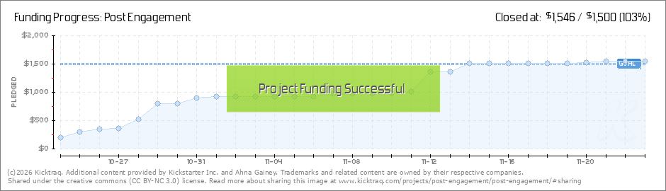 Help your backers reach your daily goals and help others see how you're doing. It's easy, with Kicktraq Mini.Here are a few quick snippits of code you can use to embed your personalized widget on your website, in your blog, and even on your favorite forum.