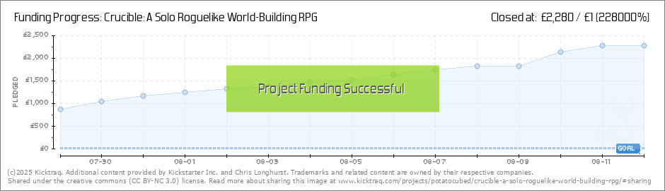 Hello! I have no idea why I got away with a funding goal of £1, but I did and here we are. Hopefully blowing past my funding goal by 80,000% will encourage the Kickstarter algorithm to promote Crucible to everybody on Earth. In the meantime, Isobel... (Read More)