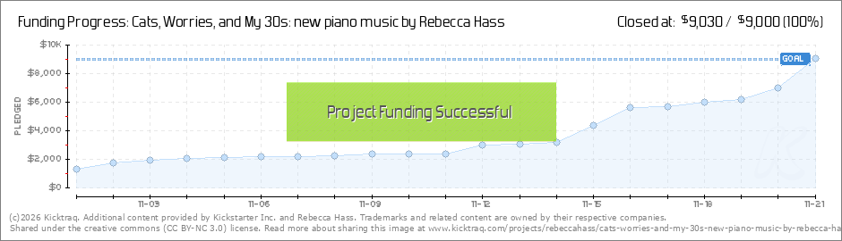 I’m so grateful for your support of this project! It’s hard to believe that after several years since I first started writing some of these pieces, this day is finally here. So much work has gone into planning the album and this Kickstarter, from... (Read More)