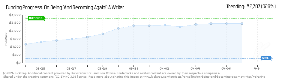 Hi! Thank you so much for choosing to follow On Being (And Becoming Again!) A Writer. I hope you’ll find the project as much fun to follow as I’ve had in preparing it. We’ll be launching early tomorrow, so be on the lookout for Kickstarter's... (Read More)