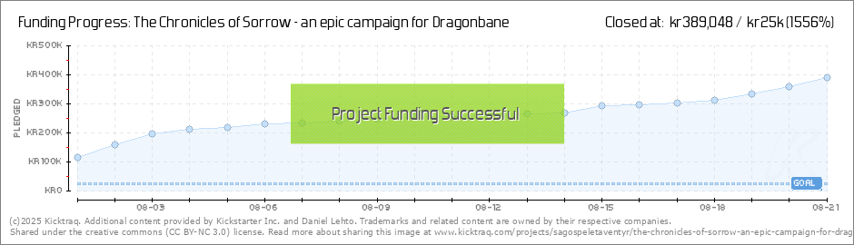 We have already passed several stretch goals! 37500 - The Traveler's Guide to Nordmark50000 - New profession: Minstrel (to be added to The Traveler's Guide to Nordmark)57500 - New profession: Pretender (to be added to The Traveler's Guide to... (Read More)