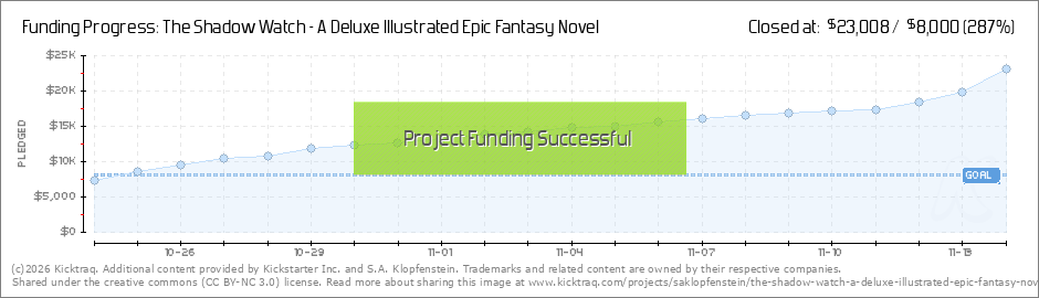 Help your backers reach your daily goals and help others see how you're doing. It's easy, with Kicktraq Mini.Here are a few quick snippits of code you can use to embed your personalized widget on your website, in your blog, and even on your favorite forum.
