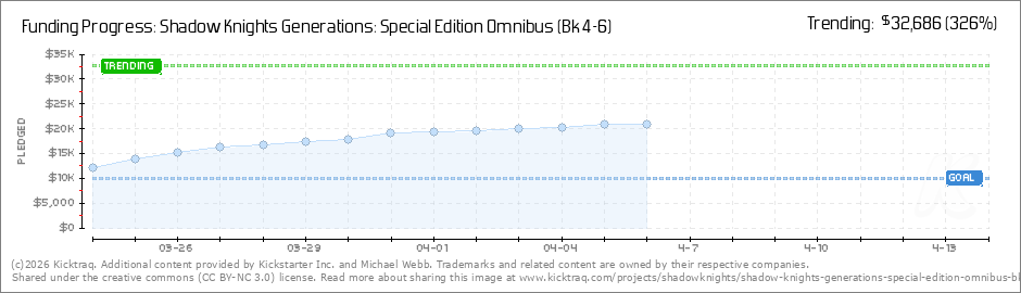 Thank you so much for helping more the Shadow Knights Generations project over its goal on the first day! Pledges are higher for this campaign after day one than they were for the first volume, last year! Nice! I'm excited to announce that dollar... (Read More)