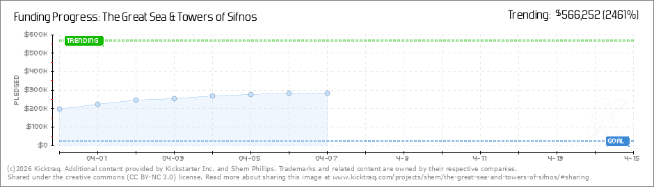 Help your backers reach your daily goals and help others see how you're doing. It's easy, with Kicktraq Mini.Here are a few quick snippits of code you can use to embed your personalized widget on your website, in your blog, and even on your favorite forum.