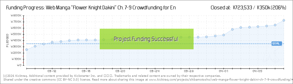 Manga artist Sh? Shibamoto launched a crowdfunding campaign on March 9 to fund the production of chapters 7 to 9 of his self-published web manga series Flower Knight Dakini. The campaign has surpassed its goal of US$3,168 and earned US$3,800 (converted from yen).