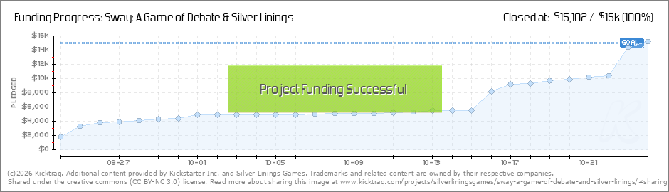 Help your backers reach your daily goals and help others see how you're doing. It's easy, with Kicktraq Mini.Here are a few quick snippits of code you can use to embed your personalized widget on your website, in your blog, and even on your favorite forum.