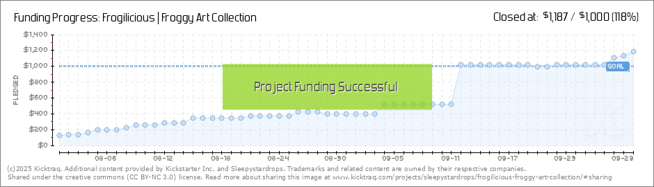 Help your backers reach your daily goals and help others see how you're doing. It's easy, with Kicktraq Mini.Here are a few quick snippits of code you can use to embed your personalized widget on your website, in your blog, and even on your favorite forum.
