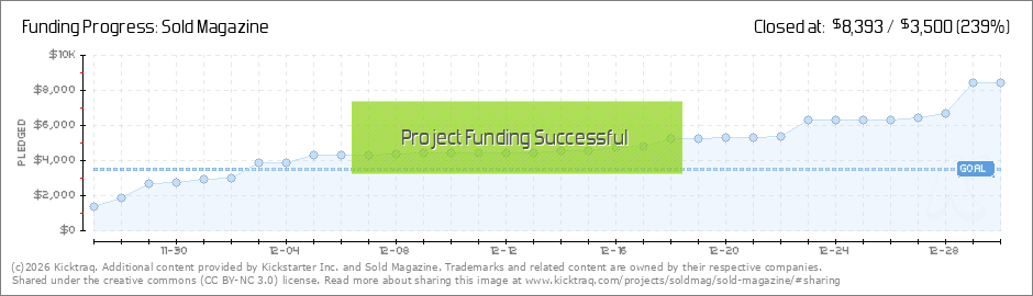 Help your backers reach your daily goals and help others see how you're doing. It's easy, with Kicktraq Mini.Here are a few quick snippits of code you can use to embed your personalized widget on your website, in your blog, and even on your favorite forum.