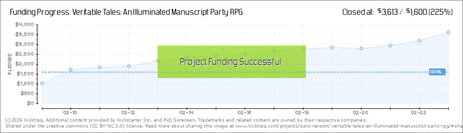 A little belated, but I am delighted to say that Veritable Tales of Folly in the Realm funded in a day! Thank you everyone who has backed. And to everyone who has saved this campaign for later, hello, thank you for your interest! There are previews... (Read More)
