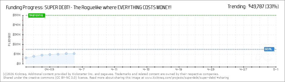 Help your backers reach your daily goals and help others see how you're doing. It's easy, with Kicktraq Mini.Here are a few quick snippits of code you can use to embed your personalized widget on your website, in your blog, and even on your favorite forum.