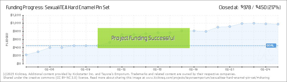 Thank you all so much! I'm happy to let you all know that we've officially unlocked the first goal! This means both the pin and sticker for gay pride are available to choose from as rewards! On to the next goal! XOXO Tayona (Read More)