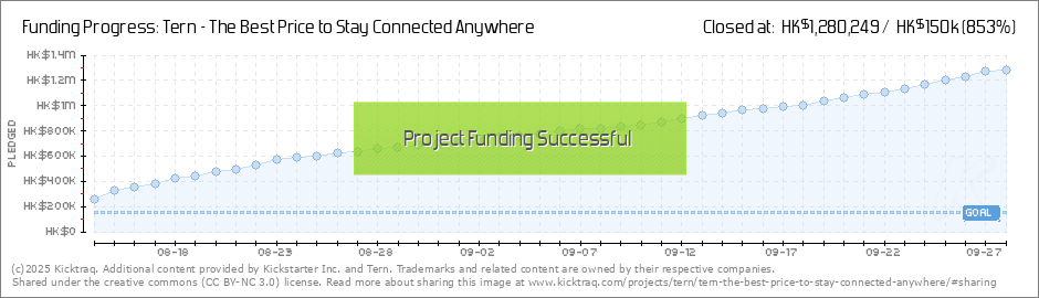 Dear all backers, Thank you for supporting Tern! With your help, our campaign was fully funded within hours and we have raised over US$80,000 now. We are happy to know that many people will be able to enjoy convenience and affordable mobile plan... (Read More)
