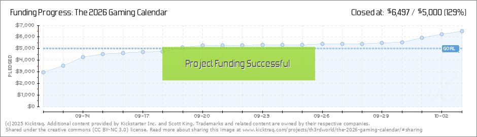 Help your backers reach your daily goals and help others see how you're doing. It's easy, with Kicktraq Mini.Here are a few quick snippits of code you can use to embed your personalized widget on your website, in your blog, and even on your favorite forum.