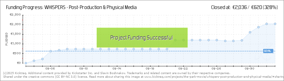 Thank you everyone who pledged to our "Whispers" Post-Production campaign. 🙏 But we're not done yet. We have some stretch goals:- €800 - We will be able to secure locations for the next full length "Whispers" movie.- €1500 - We will announce... (Read More)
