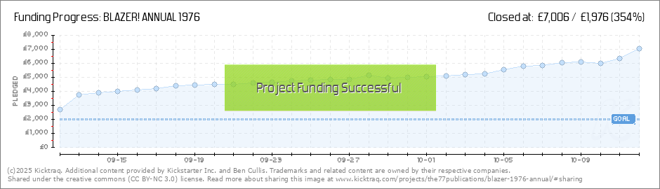 Kickstarter for the Blazer Annual 1976 ends promptly at 9.30 BST on Sunday 12th October