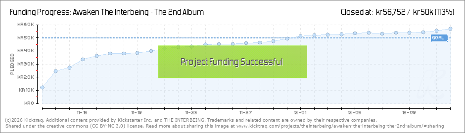 It's only been 4 days since our Kickstarter launched and we've already reached 69% of our goal! Words don't cover it. We have a lot of love for you, our backers! Thank you so much for helping us release this 2nd album. #AwakenTheInterbeing (Read More)