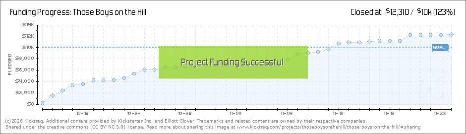 Good morning, incredible backers! I'm thrilled to share some exciting news about our crowdfunding campaign for Those Boys on the Hill. Thanks to YOUR incredible support, we've reached an amazing 90% of our $10,000 goal in record time! 🎉 Heartfelt... (Read More)