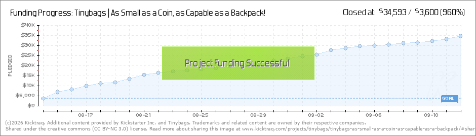 Hi Backers, Hope you're all doing well. This is just a quick update detailing how to easily share Tinybags with your friends and family on social media, our new reward levels that were recently added plus some additional info on our crowdfunding... (Read More)