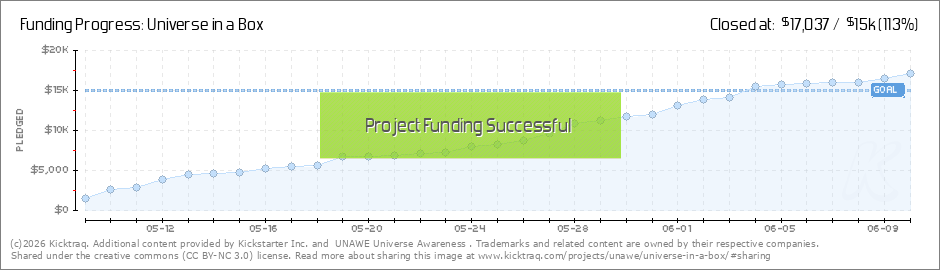 We have just reached the €15,000 target in our Universe in a Box Kickstarter crowdfunding campaign! This means that over the next few months more than 160 boxes will be sent around the world and many teachers trained in our astronomy education... (Read More)
