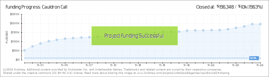 Help your backers reach your daily goals and help others see how you're doing. It's easy, with Kicktraq Mini.Here are a few quick snippits of code you can use to embed your personalized widget on your website, in your blog, and even on your favorite forum.