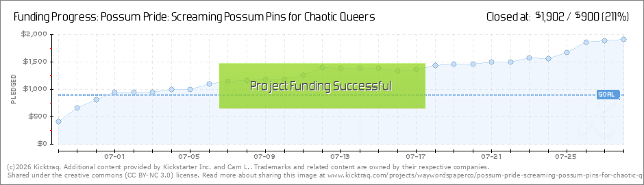 We are so close to unlocking the final tier!!! We have 71 hours (as of this writing) to raise a little over $100 to unlock the final pin tier! Thank you so much to everyone who has signal-boosted, shared, and hyped up this Kickstarter!! Fingers... (Read More)