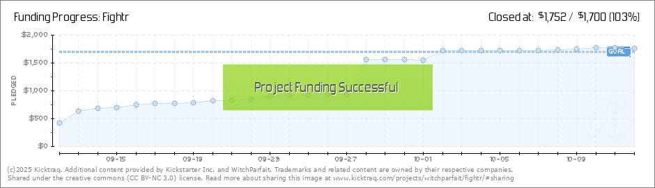 Help your backers reach your daily goals and help others see how you're doing. It's easy, with Kicktraq Mini.Here are a few quick snippits of code you can use to embed your personalized widget on your website, in your blog, and even on your favorite forum.