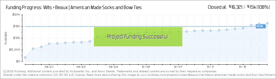 Backers, One Week in and 54% funded! We are so excited and thankful for the amazing pledges this past week. In order to reach our goal of $15,000 we need just $300 per day. Donate today and help us make amazing socks and bow ties for you! Looking... (Read More)