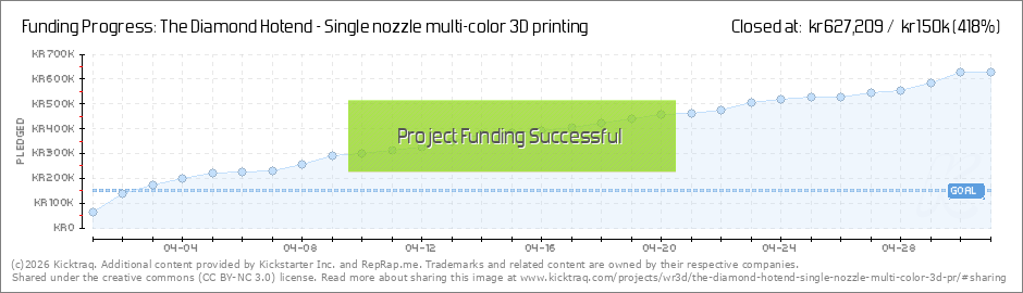 A big thanks to all fans, friends and backers of the Diamond Hotend.The hole Kickstarter campaign has gone way over our expectations and we want to thank you all for helping us reach our goal in just 2 days! This is as you might know our... (Read More)