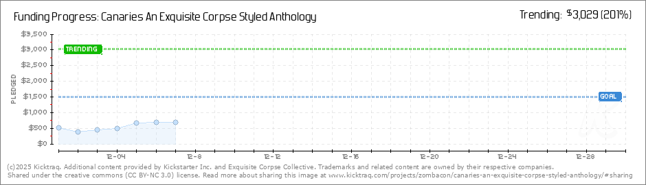 Help your backers reach your daily goals and help others see how you're doing. It's easy, with Kicktraq Mini.Here are a few quick snippits of code you can use to embed your personalized widget on your website, in your blog, and even on your favorite forum.
