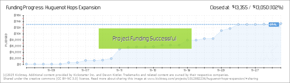 Thanks to each of you who provided support, advice and encouragement throughout our Kickstarter project. We can't be more thankful to our friends, family members, fans of local craft beer and supporters of local farming for everything you have done... (Read More)