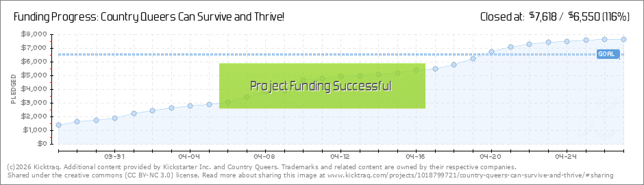 After much debate, I've decided not to make shirts/bags that say "country queers" on them. Many people living in rural areas wouldn't feel comfortable wearing/carrying something so explicit, and I wanted to make rewards that are more universal, so... (Read More)
