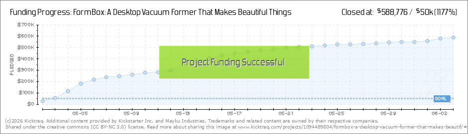Hello Makers, The last time we spoke, we were on $100,000 and we’ve just gone over $400,000! We couldn't have expected this in all of our wildest crowdfunding based dreams. As we write this, there's over one thousand of you backing the FormBox. To... (Read More)